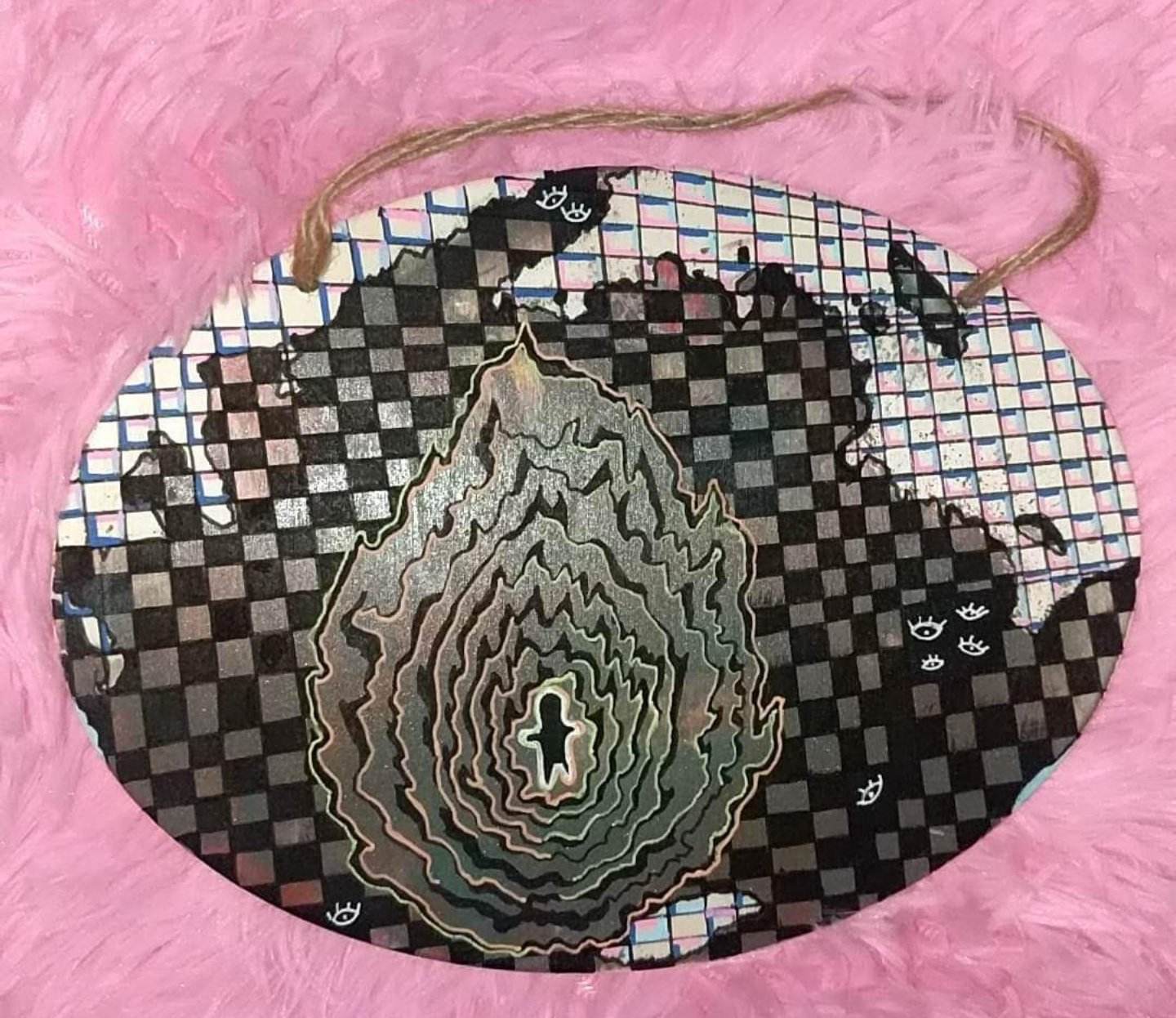 "Inside the Fire" is an 8" x 5.75" one-of-a-kind original, limited edition wall art wood plank, hand painted by trippy contemporary artist Sydney Nova.